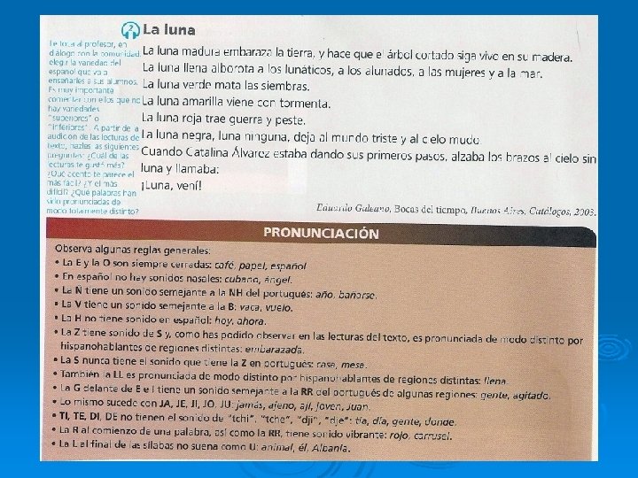 Ejemplo de libro para sexto año con elementos de contraste entre las dos lenguas