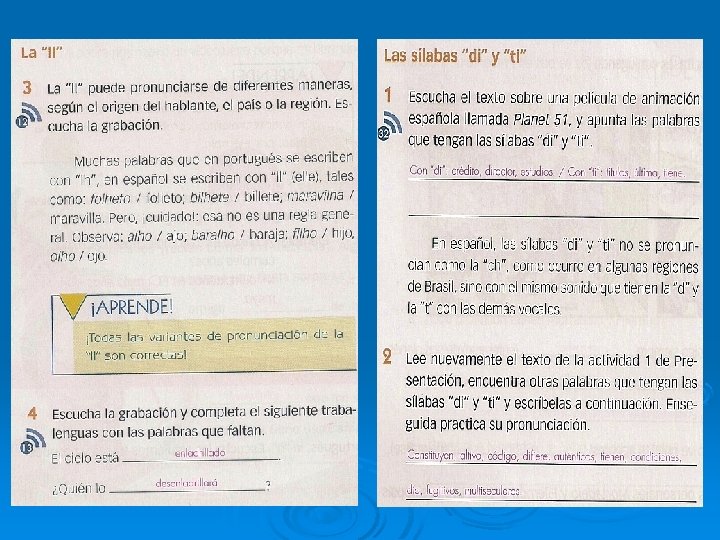 2 - No deje de lado las destrezas orales (comprensión y producción) aunque el curso tenga como objetivo la lectura instrumental. - Es necesario insistir en el trabajo global y específico, con los sonidos, articulación, variedades del español, etc. - Mostrar y practicar los contrastes necesarios. - Proporcionar suficientes muestras de lengua (adecuadas, diversas y significativas). - Usar todos los recursos posibles (trabalenguas, canciones). - Hacer dictados: microdictados, dictados para recuperación de información (dictogloss), dictados de corre-corre (running ditation)… - Diálogos con la técnica de leer, levantar la cabeza y hablar. - Actividades comunicativas con vacío de información. - Hablar con personajes imaginarios…