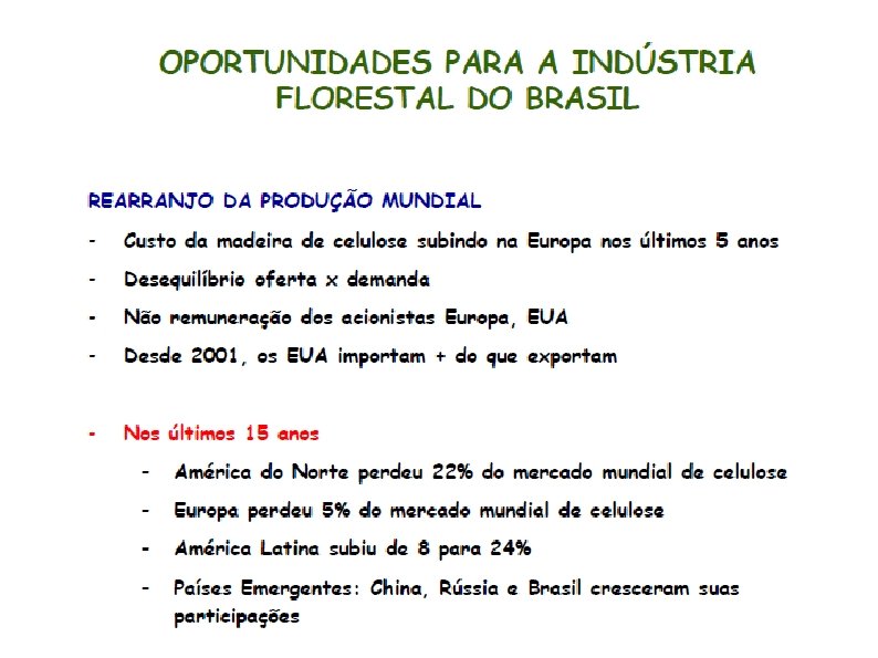 O Mato Grosso do Sul, estado onde a Brasilwood é forte atuante, apresentou uma evolução de cerca de 22% na área plantada de Eucalipto e Pinus entre 2011 e 2012. No que tange distribuição espacial, Pinus predomina na região Sul e o Eucalipto nas demais áreas.
