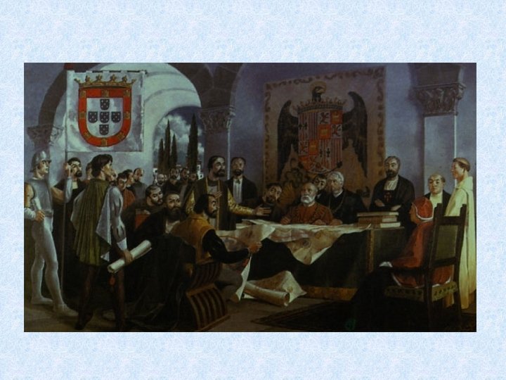 O TRATADO DE TORDESILHAS (1494) Foi assinado para selar a paz entre Espanha e Portugal. Os países ibéricos chegaram a um acordo, assinando o tratado em 1494. Ficou estabelecido que as terras e Ilhas a leste do meridiano, a contar de 370 léguas das Ilhas de Cabo Verde, pertenceriam a Portugal e, as que ficassem a oeste da mesma linha, pertenceriam à Espanha.