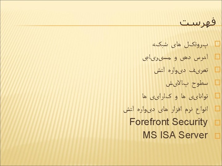 MS ISA SERVER � Versions � MSProxy � MS ISA Server 2004 � MS ISA Server 2006 � Forefront TGM 2009 � Job � General � Routing � Proxy Security