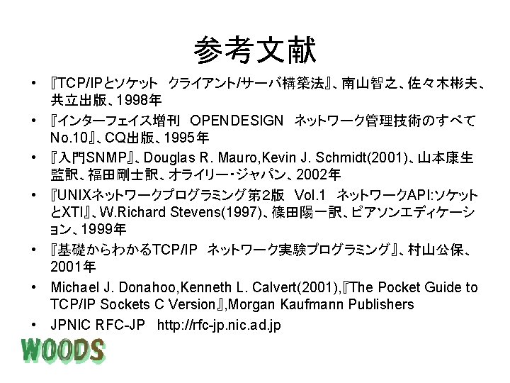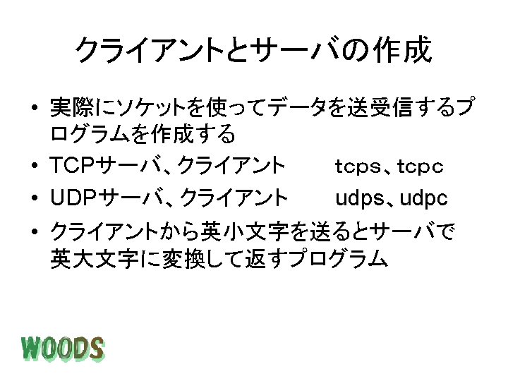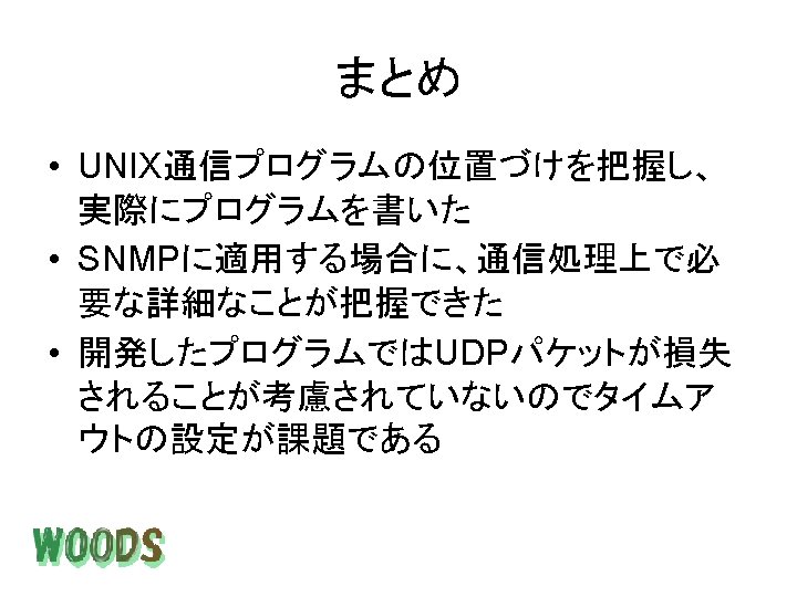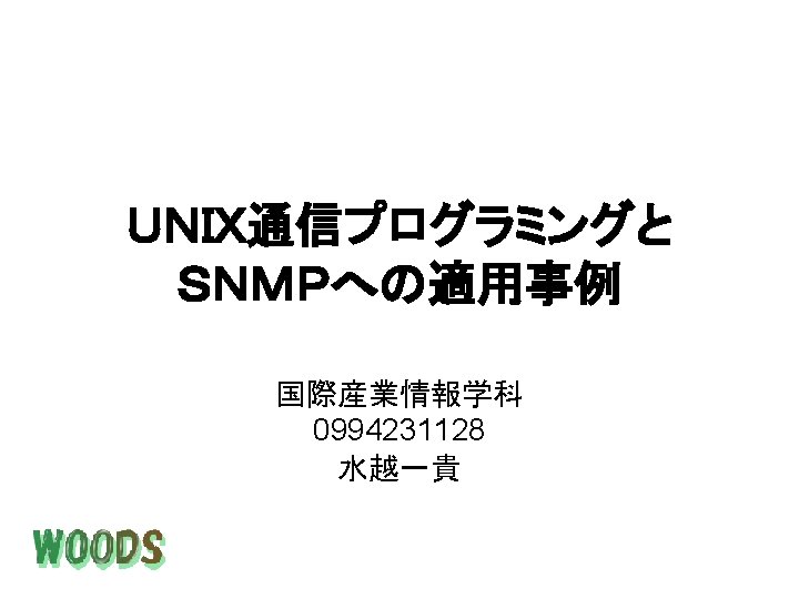 tcps micchiikedu micchi tcps Handling client 157 17 Slides: 24 Download presentation 実行結果 <tcps実行ホスト側> [micchi@ikedu micchi]$. /tcps Handling client 157. 17. 49. 70 <tcpc実行ホスト側> [micchi@leaf example]$. /tcpc 157. 17. 49. 22 client. SERVER CLIENTSERVER <udps実行ホスト側> [micchi@ikedu micchi]$. /udps Handling client 157. 17. 49. 70 <udpc実行ホスト側> [micchi@leaf example]$. /tcpc 157. 17. 49. 22 client. SERVER CLIENTSERVER 実行結果 SNMPパケット 管理情報 SNMPパケット マネージャ Linux(leaf) 157. 17. 49. 70 エージェント Catalyst 157. 17. 49. 253 [micchi@leaf getmd-command]$ getmd -c b 204 157. 17. 49. 253 1. 3. 6. 1. 2. 1. 1. 1. 0 Cisco Internetwork Operating System Software IOS (tm) C 2900 XL Software (C 2900 XL-H 2 S-M), Version 11. 2(8. 2)SA 6, MAINTENANCE INTERIM SOFTWARE Copyright (c) 1986 -1999 by cisco Systems, Inc. Compiled Wed 23 -Jun-99 17: 48 by boba