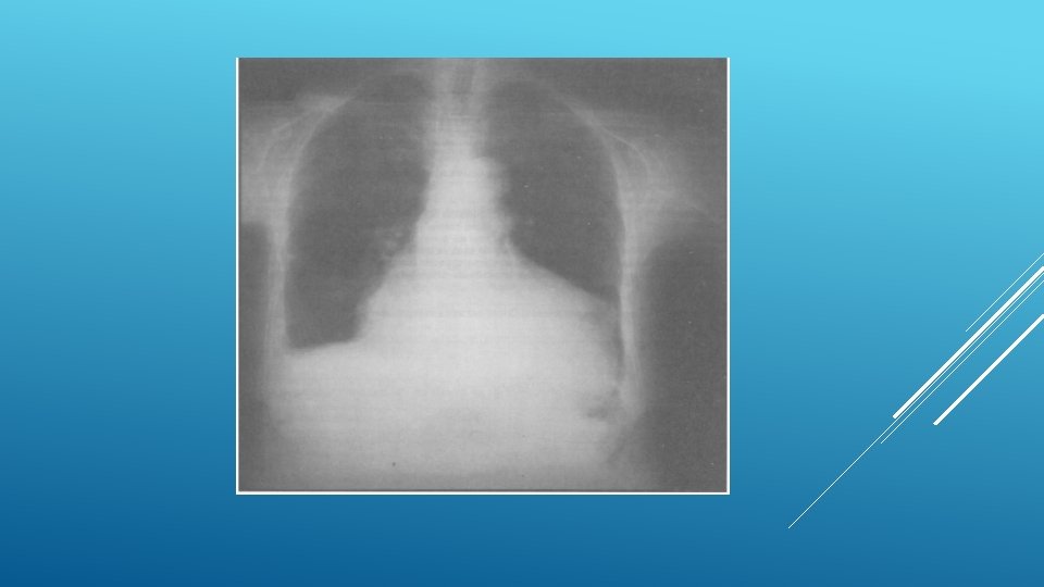8. La radiographie thoracique vous est fournie. Quelle est votre interprétation ? • Cardiomégalie développée aux dépens du VG (aspect globuleux) • Ectasie pariétale VG (anévrisme du VG) • Épanchement pleural droit