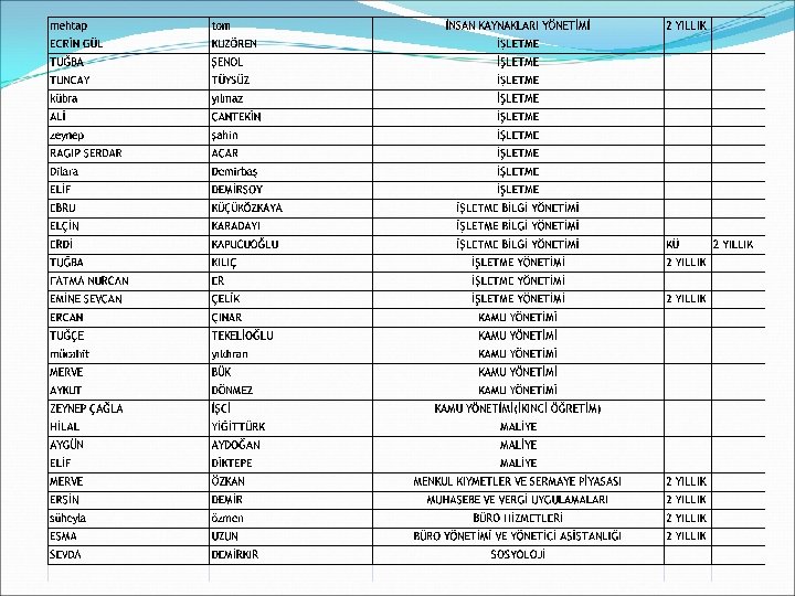 RAMAZAN ÇETİNKAYA BAŞARILI GÖZDE KAHRİMAN 3, 00 FERDİ YALÇINKAYA BAŞARILI GÜLNAZ OKUMUŞ BAŞARILI TUĞBA GÖZEN BAŞARILI BÜŞRA ERTAŞ BAŞARILI HASAN KARA BAŞARILI MESUT DOĞANAY BAŞARILI ŞENGÜL GÜCUKŞERBETÇİ BAŞARILI TUĞÇE NAHAR BAŞARILI ELİF BERFİN CERAN BAŞARILI ÖMER EVGİN BAŞARILI YALIN ÇALIŞKAN 3, 18 BEKİR GÖK BAŞARILI MURAT AYDIN 3, 24