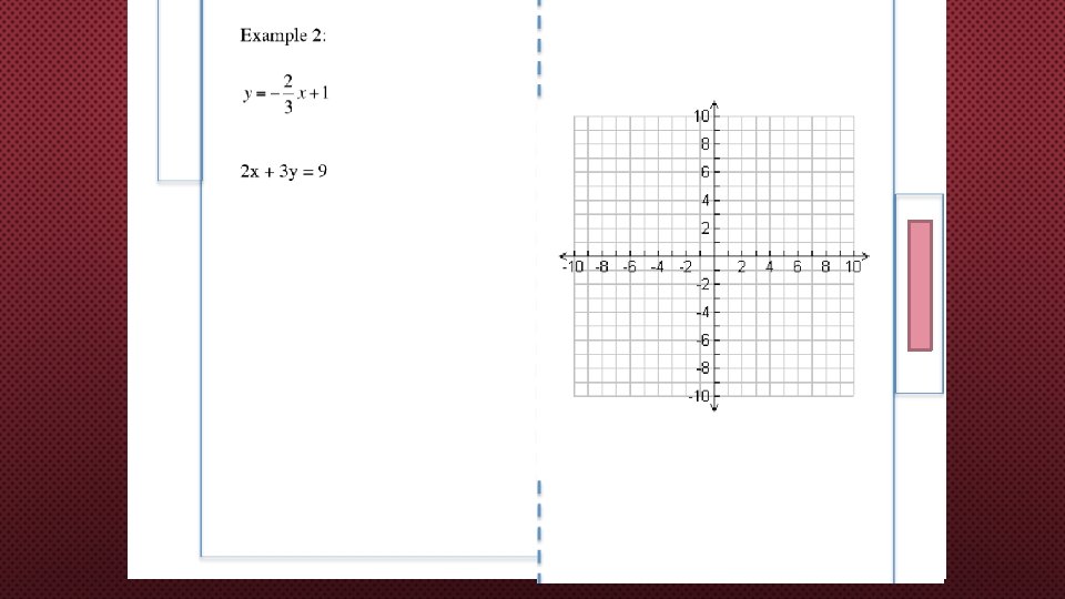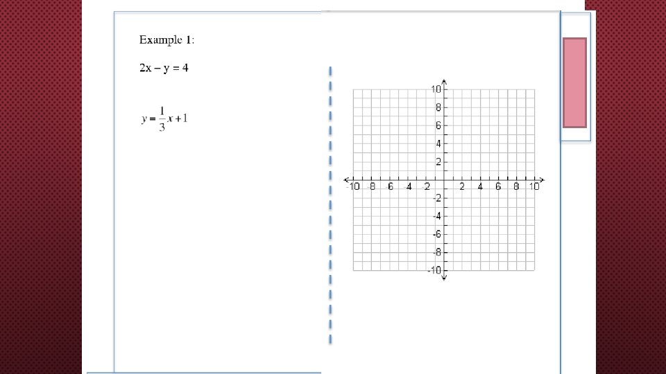 HW WK 8 DUE 9/27/19 IS DESMOS MARBLE SLIDES CODE: 3 P 74 AW How much is enough? Date Time Activity Grade 9/25/19 3: 30 -4: 00 Khan linear or non linear 75% 9/26/19 8: 00 -8: 30 IXL S. 1 Linear vs. Nonlinear 80% 9/26 6: 00 -6: 15 TEXT 7. 1 evaluate section Slope. Intercept ¾ questions attempted EOS DUE 10/2/19 Also, you need to be working on your EOS for final exam which is in 1 week. This EOS can be khan academy, ixls, or from the online textbook. You need to have activities that are self-checking, to ensure you are doing the problems correctly. For the EOS note the date, time spent, and activity, and grade in a chart like the one below.