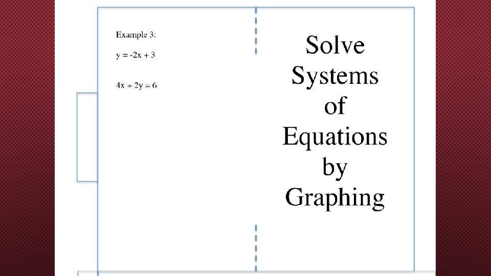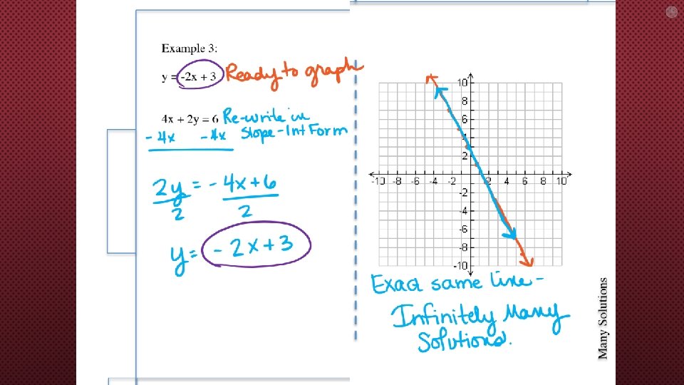 NOTICE/ WONDER? LOOK AT THE SYSTEMS YOU HAVE GRAPHED SO FAR-CAN YOU SEE A PATTERN TO HELP DETERMINE WHEN A SYSTEM WILL HAVE 1 SOL? NO SOL? INFINITELY MANY SOLS?