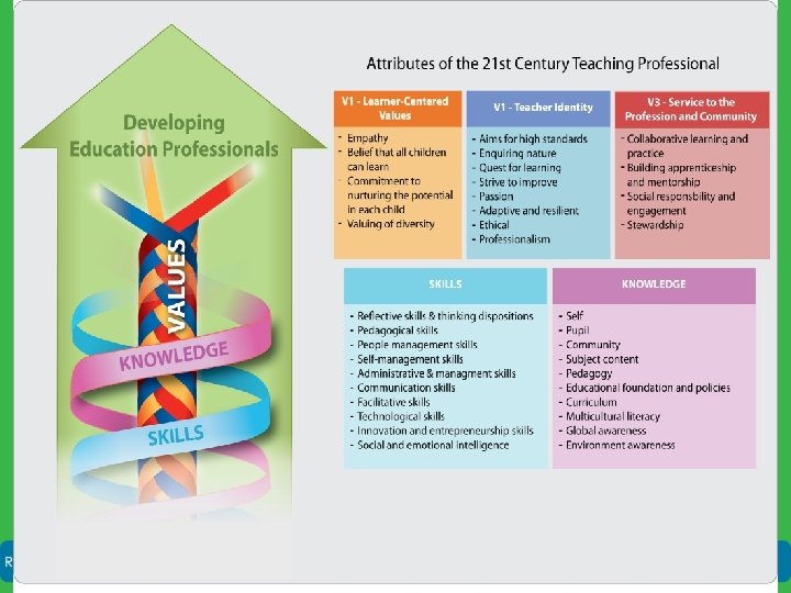 TE 21 • TE 21 (NIE, Singapore) • A framework which provides for a wellrounded professional: skills, knowledge and values along with a Teacher Growth Model (TGM) • TGM provides for six domain developmental areas: 27