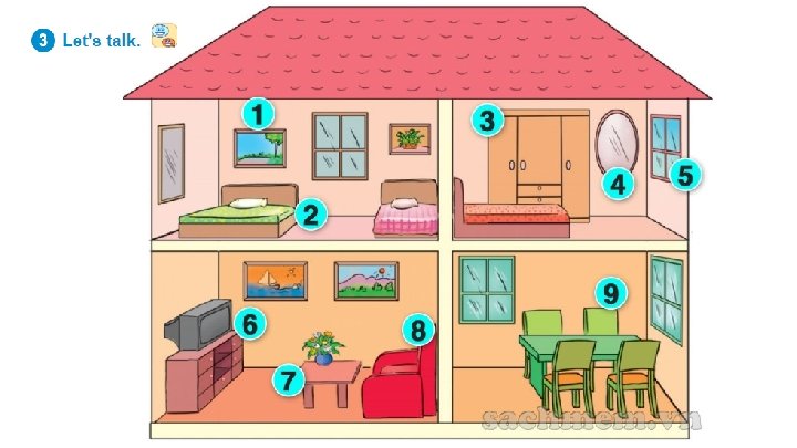 * New words: - fan: cái quạt - mirror: cái gương - window: cửa sổ - count: đếm - how many: có bao nhiêu - cup: cái ly - lamp: cái đèn
