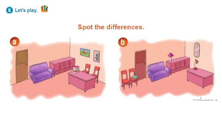 This is my living room. There are many things in the room. There are two windows and one door. There a sofa, a desk and eight chairs. There is a lamp on the desk and a TV on the cupboard. There are four pictures and two fans on the walls. 4. How many pictures are there ? =>There are four pictures.