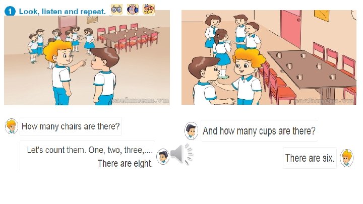 *Model sentence: Hỏi và trả lời về số lượng của đồ vật. (? ) How many ______ are there? => There are _____. Ex: (? ) How many fans are there? => There are two.