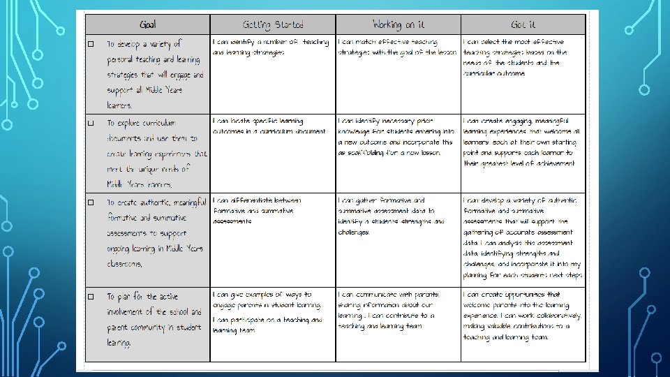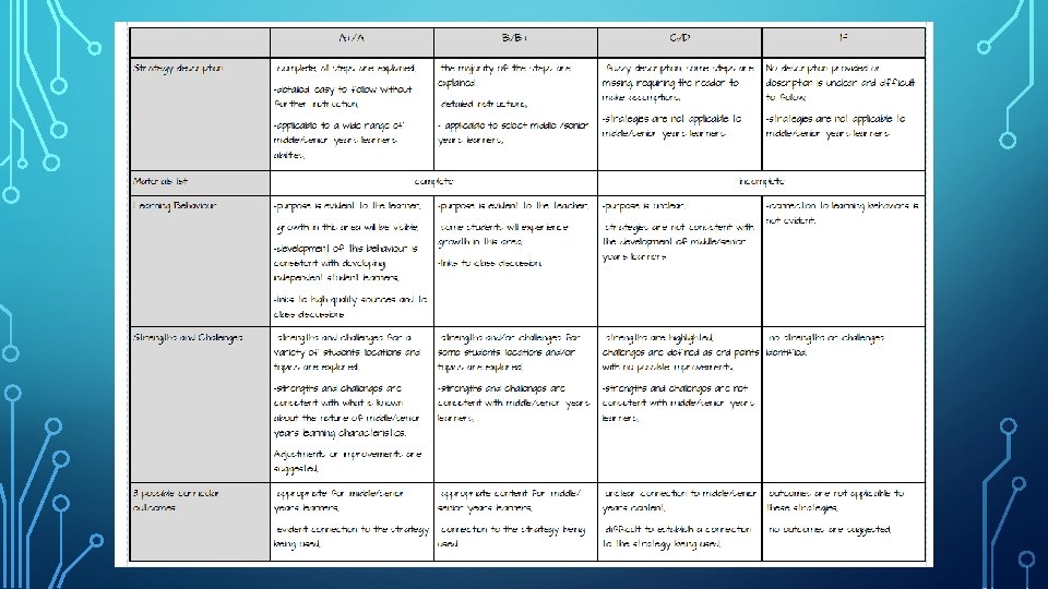 • Review Experiential Learning Opportunities, • Student Self Evaluation, • Teacher Teams, • Teaching Strategy Dossier