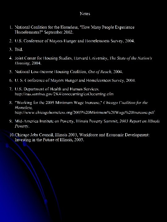 Some Facts on Homelessness l Over the course of a year, between 2. 3 and 3. 5 million people experience homelessness in the U. S. l In the Chicago Metropolitan area, an average of 166, 000 people experience homelessness in the course of 1 any given year