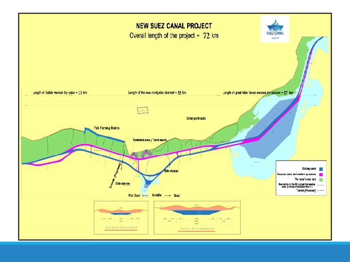 NORTH Mediterranean Sea Port Said Ballah Bypass Capacity: 17 ships Bitter Lakes Capacity: 36 ships SOUTH Red Sea Port Tewfik