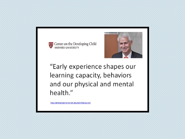 There are too many words and worries on this slide ! A National Portrait of Young Children at Special Risk for Early School Failure • More than 153, 000 children under age 6 are in foster care. • More than 300, 000 children under age 6 (half of whom are infants and toddlers) have incarcerated parents. • More than 567, 000 young children are homeless, representing 42 percent of all homeless children. • More than 300, 000 young children are victims of substantiated child abuse or neglect every year. • An estimated 2. 2 million young children (10 percent) live with parental substance abuse or dependence. • One to four million young children who are exposed to domestic violence. • An estimated 27 percent of low-income kindergarten children are affected by parental, especially maternal, depression. • An estimated 17 percent of young children have diagnosable emotional and behavioral disorders. http: //www. nccp. org/publications/pdf/text_648. pdf