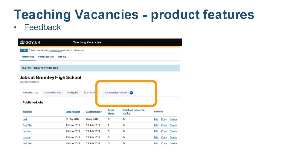 Teaching Vacancies - overview • • • A free national service available to state schools to list teaching vacancies Introduced to help schools reduce time and money spent on recruitment advertising No financial controls means no paperwork Real-time recruitment: Schools can directly upload, edit and re-publish vacancies Easy searchable job listing service to help teachers find their next teaching role www. gov. uk/find-teaching-job