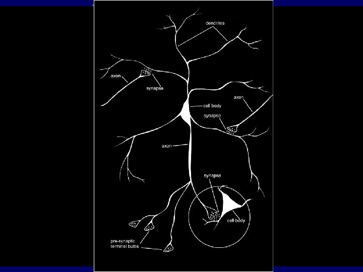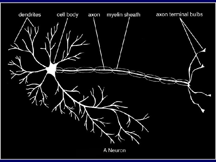 HOW THE BRAIN LEARNS n Each neuron has thousands of dendrites (like tree branches and twigs--“dendrite” means “treelike”) which receive chemicalelectrical messages from other neurons’ axons across the synapses.