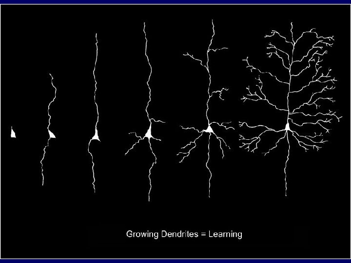 THE BRAIN’S CONSTRUCTIVE LEARNING PROCESS n Like twigs on a tree that can grow only from a twig or branch that is already there, so dendrites can grow only from a dendrite that is already there--from something the learner already knows. n Then, like twigs growing on a tree, learning is constructed, higher and higher, skill and understanding increasing.