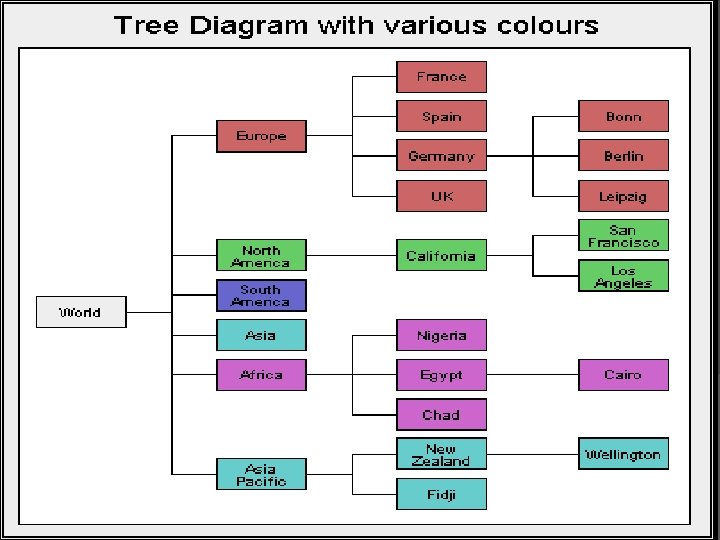 o Tree or Stream chart Depicts development, growth and change by beginning with the course(the trunk)which spreads out into many branches; or by beginning with many tributaries which then converge into a single channel.