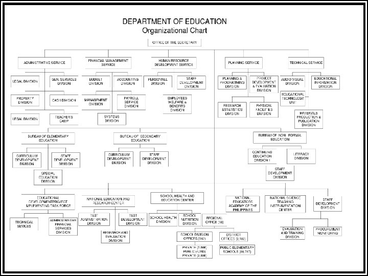 o Organizational Chart �Shows how one part of the organization relates to other parts of the organization.