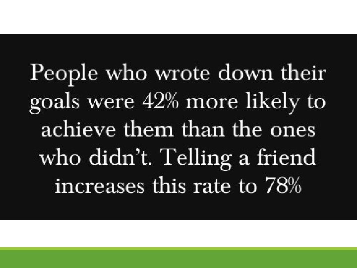 T – Time-bound What timeframe would create a sense of urgency? • Goals should be linked to a timeframe that creates a practical sense of urgency. • During your timeframe, ask yourself: • What can I do TODAY to reach my goal? • What can I do one week from now? • What can I do one month from now?