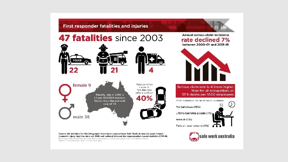 FIRE: The Hot Disaster Fire ground Injuries Causes, 2017 4% 3% 6% 29% Strain, Overexertion 11% Fall. Jump, Trip, Slip Other Exposure to Fire Products Contact with Objects Struck by Exposure to Chemical or Radiation 11% Extreme Weather 20% 16%