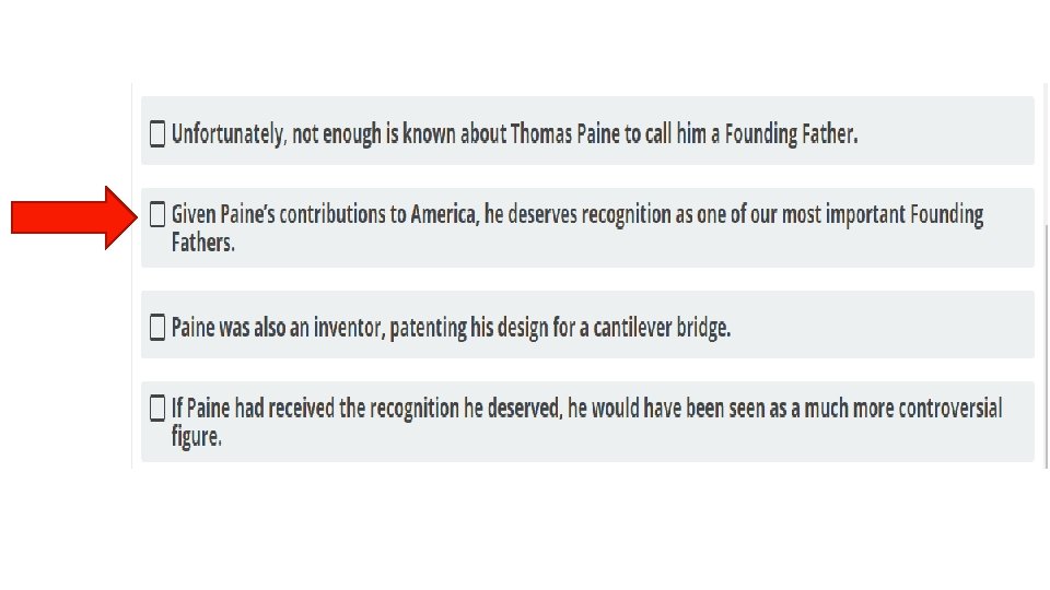 § STEP 3: EVALUATE THE ANSWER CHOICES. TEAS English Tips § Compare each answer choice to your prediction, eliminating those that are not a match and choosing the one that is a match.