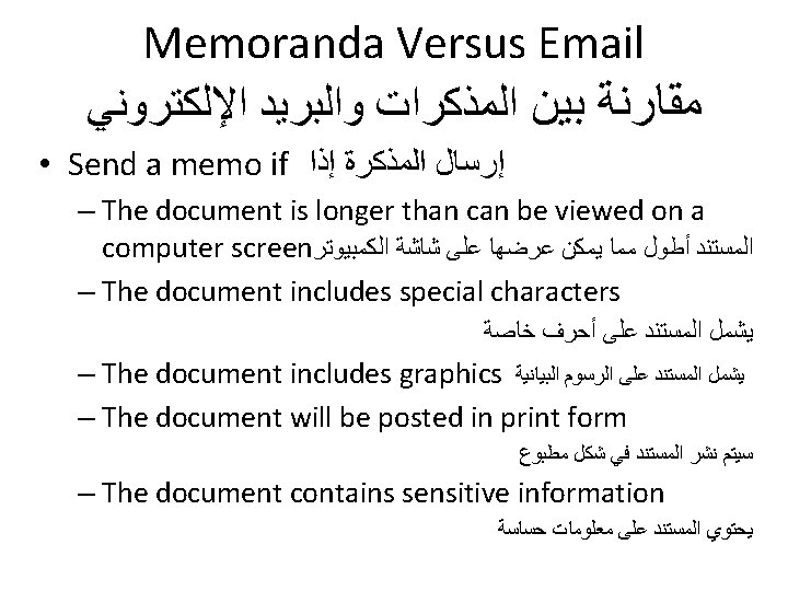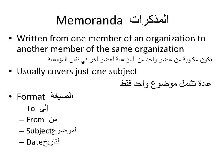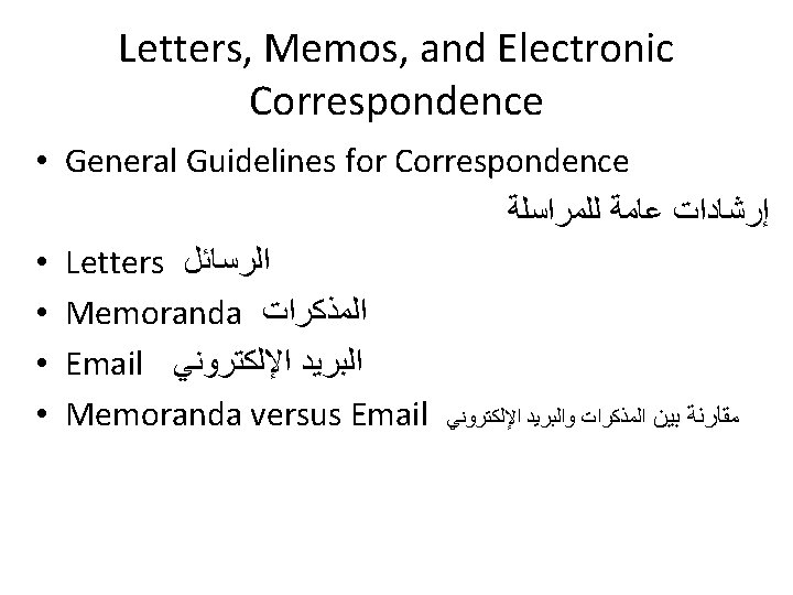 Technical Communication Fundamentals Chapter 4 Letters Memos and Slides: 18 Download presentation Technical Communication Fundamentals Chapter 4 Letters, Memos, and Electronic Correspondence ﻭﺍﻟﻤﺮﺍﺳﻼﺕ ﺍﻹﻟﻜﺘﺮﻭﻧﻴﺔ ، ﻭﺍﻟﻤﺬﻛﺮﺍﺕ ، ﺍﻟﺮﺳﺎﺋﻞ William Sanborn Pfeiffer Kaye Adkins