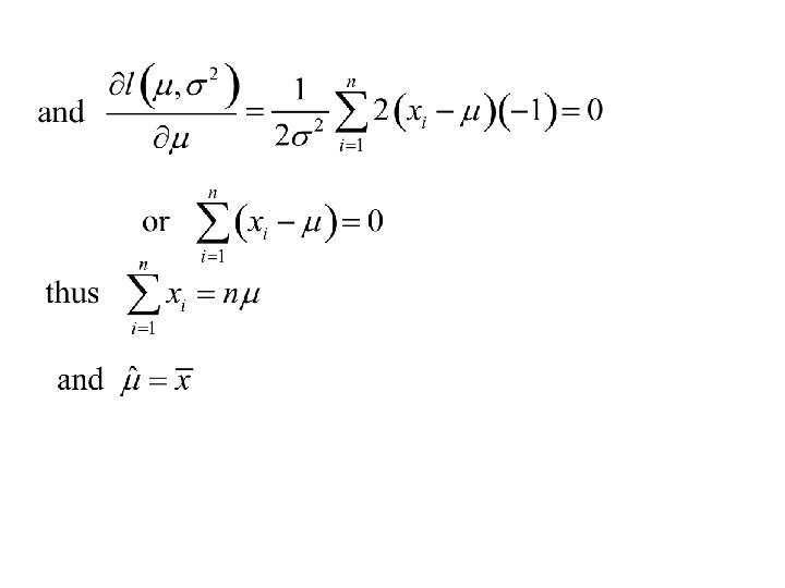 Example (of finding a MLE) Let x 1, … , xn denote a sample from the normal distribution with mean m and variance s 2. The density of xi is: And the joint density of (x 1, x 2, … , xn) is:
