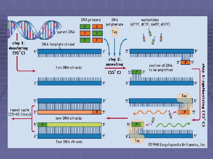 PCR (reacción en cadena de polimerasa) Componentes de la reacción § Polimerasa § Primers § d. NTP’s § Cloruro de magnesio § Agua § Buffer