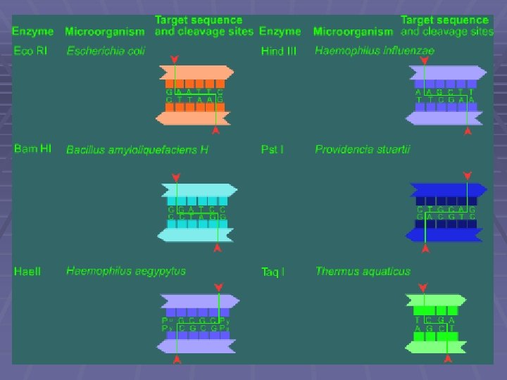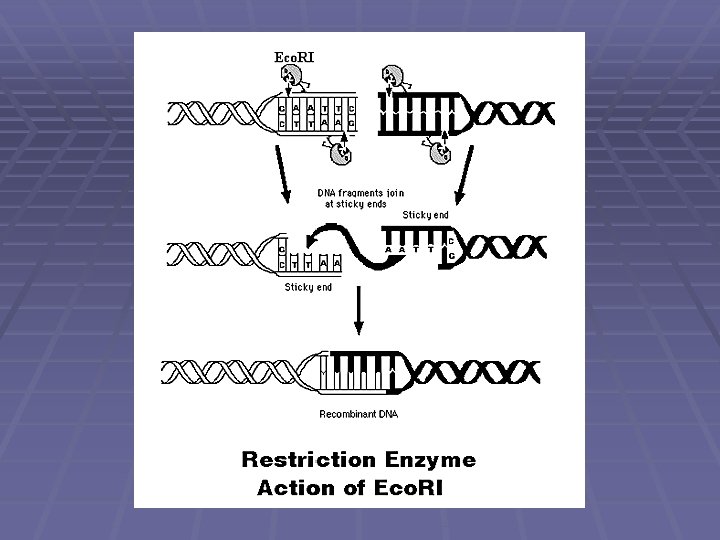 ENDONUCLEASAS O ENZIMAS DE RESTRICCIÓN § Generan cortes internos en la molécula de ADN § Pueden generar extremos romos o cohesivos