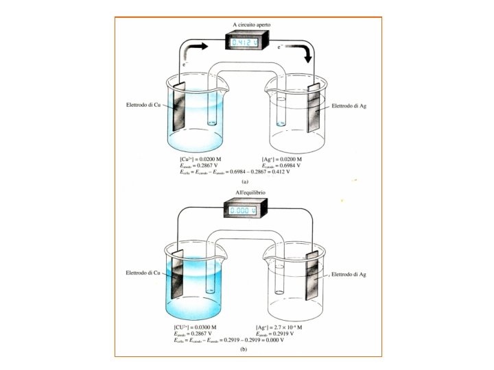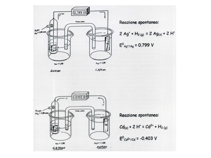 Rappresentazione schematica della cella: anodo Cu Cu. SO 4 catodo (0. 02 M) Ag. NO 3 cambiamento di fase (0. 02 M) Ag ponte salino anodo: elettrodo dove avviene l’ossidazione catodo: elettrodo dove avviene la riduzione