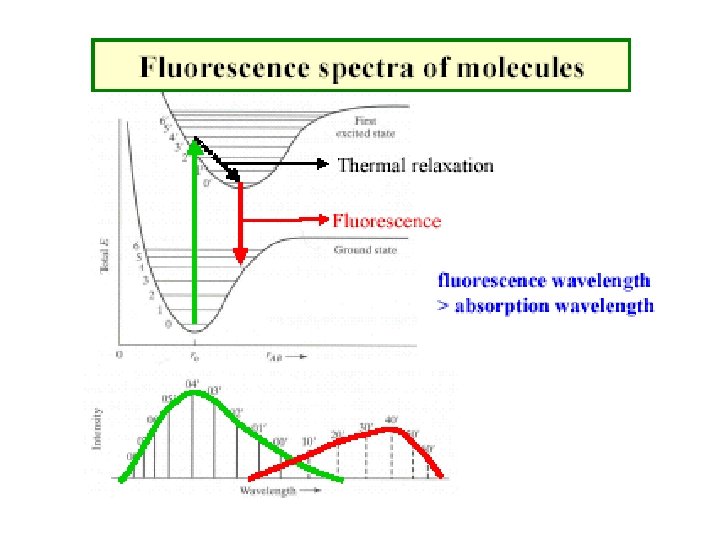 Legge di Stokes La lunghezza d'onda della fluorescenza emessa è usualmente maggiore della lunghezza d'onda della luce assorbita. Solo quando delle collisioni tra le molecole forniscono ulteriore energia all'elettrone nello stato eccitato ci possono essere delle eccezioni.