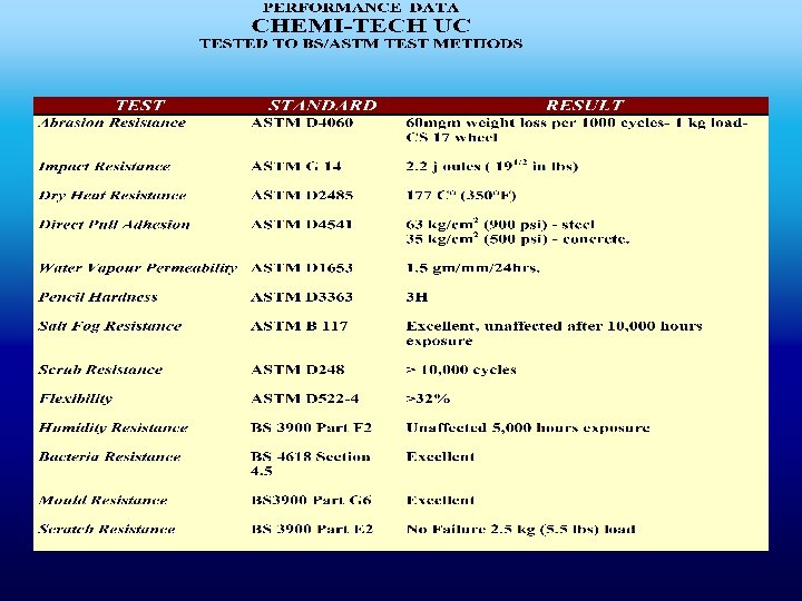 Sistema de Protección Química • Posee la más alta performance en situaciones de sometimiento a stress químico permanente. • Excelente adhesión a superficies tanto metálicas como minerales ( concreto ). • Muy alta resistencia química a la mayoría de los químicos, grasas y aceites industriales. • Aprobado para la utilización en tanques o líneas de tuberías de mezcla de ácidos, grasa y aceites industriales.