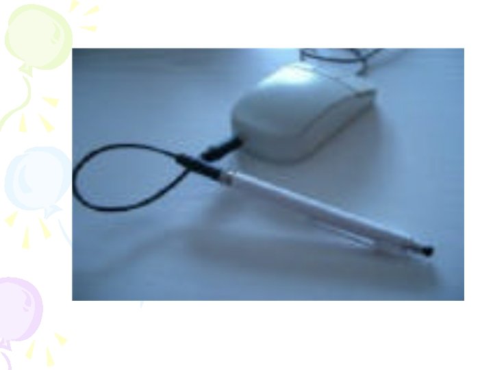 RATONES DE CABEZA • Ratones de boca – permiten mover el puntero del ratón por la pantalla con el movimiento de la boca – los clic se harán mediante soplo o aspiración – algunos son sensibles a la humedad de la lengua para hacer clic.