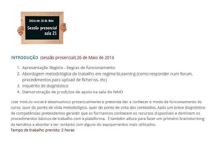 OFICINAS DE INCLUSÃO - PRODUTOS DE APOIO PARA NECESSIDADES EDUCATIVAS ESPECIAIS ESCOLA SUPERIOR DE EDUCAÇÃO DO PORTO registo nº CCPFC/ENT-ES-0588/13 validade: 2016 -01 -24 OFICINAS DE INCLUSÃO - PRODUTOS DE APOIO PARA NECESSIDADES EDUCATIVAS ESPECIAIS Destinatários: Professores dos Grupos 910, 920 e 930 Registo nº CCPFC/ACC-73270/13 Validade: sex, 2016 -01 -29 Regime: Acão em regime de b. Learning (misto) Certificação: Deverá relevar para progressão na carreira Nº de horas: 30 (1 crédito) Carga horária: 6 horas presenciais + 24 horas a distância Sessões presenciais 1. Sessão inicial 2 Horas (Apresentação e procedimentos na plataforma) 2. Sessão intermédia 2 horas (acompanhamento) 3. Sessão Final (Avaliação) Critérios de elegibilidade 1. Ser docente dos grupos 910, 920 ou 930 2. Estar a exercer nos grupos da Ed. Especial 3. Nunca ter frequentado uma ação de formação em TA