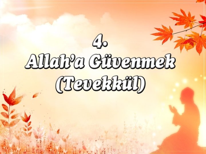 Öğrendiklerimizi test edelim Bir işte tüm elinden gelenleri yapıp sorumluluklarını yerine getirdikten sonra işin sonu hakkında Allah’a dayanıp güvenmeye ne denir? A) Sabır B) Tevekkül C) Şükür D) Kaza Üzerimize düşen görevleri yaptıktan sonra Allah’a güvenmeye Tevekkül denilir.