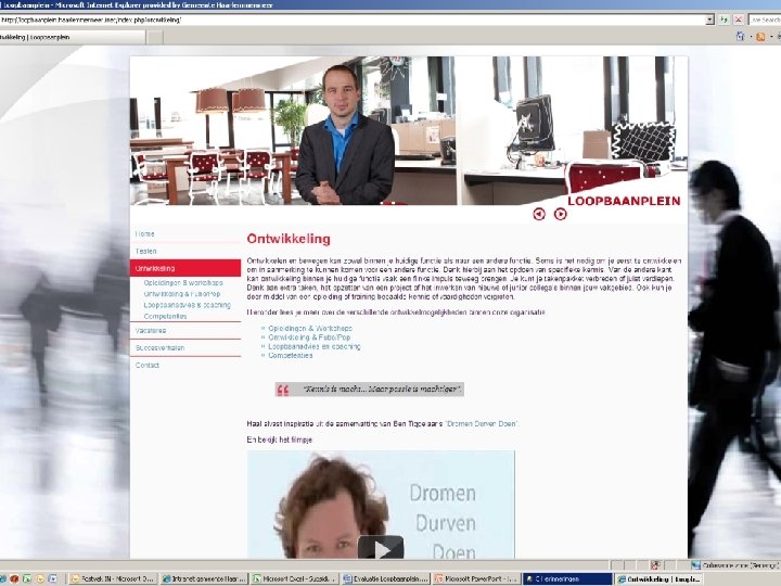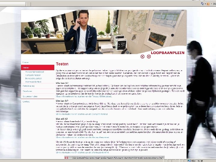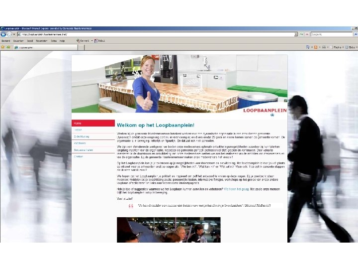 Opdracht: § Ga uiteen in twee groepen § Bedenk eerst 5 minuten individueel hoe Haarlemmermeer het Loopbaanplein kan uitbouwen en verbeteren § Bespreek gedurende 10 minuten de ideeën en bepaal binnen de groep welke drie ideeën het beste zijn § Presenteer deze drie ideeën aan de rest van de groep