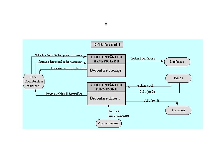 Întocmirea diagramelor de flux de date (DFD) DFD este o reprezentare grafică a transformării datelor de intrare în date de ieşire folosind un set de simboluri de reprezentare şi un set de reguli de completare şi validare.