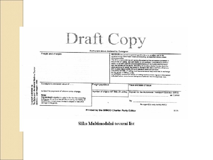 Transportni dokumenti - međunarodni železnički tovarni list - CIM međunarodni drumski tovarni list– CMR vazdušni tovarni list – AWB teretnica – konosman u pomorskom transportu rečni tovarni list multimodalni tovarni list bordero u zbirnom transportu kargo avio manifest brodski manifest