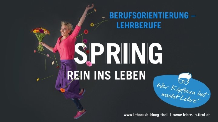 Berufsorientierung – Lehrberufe Besondere Lehrausbildungen Lehre und Matura Fachausbildung für Maturantinnen und Maturanten Skirennsport und Lehre Fachausbildung mit verkürzter Lehrzeit Überbetriebliche Lehrausbildung Individuelle Berufsausbildung (IBA) lehrausbildung. tirol | lehre-in-tirol. at 20