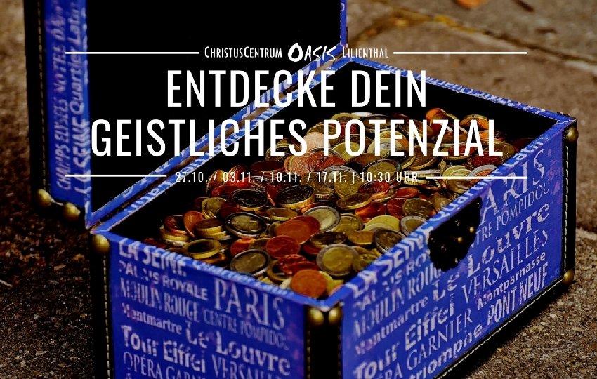 Matth. 28, 19 -20 Deshalb geht hinaus in die ganze Welt und ruft alle Menschen dazu auf, meine Jünger zu werden Tauft sie auf den Namen des Vaters, des Sohnes und des Heiligen Geistes! Lehrt sie, alles zu befolgen, was ich euch aufgetragen habe. Ihr dürft sicher sein: Ich bin immer bei euch, bis das Ende dieser Welt gekommen ist! Wie du entwickelst, was Gott in dich hinein gelegt hat!