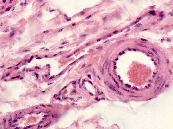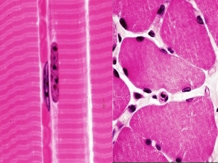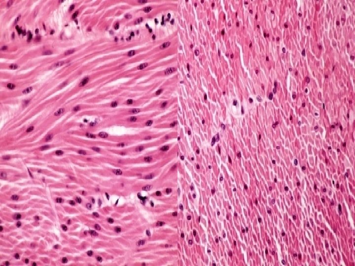 Músculo liso Las células musculares lisas presentan filamentos contráctiles, pero a diferencia de la musculatura estriada esquelética y cardíaca, estos filamentos contráctiles no se disponen en forma de sarcómeros. Por lo tanto esto nos marca la ausencia de las estria- ciones transversales que son visibles mediante la microscopía óptica. El núcleo siempre está ubicado en el centro de la célula, es alargado con forma de cigarro o habano.