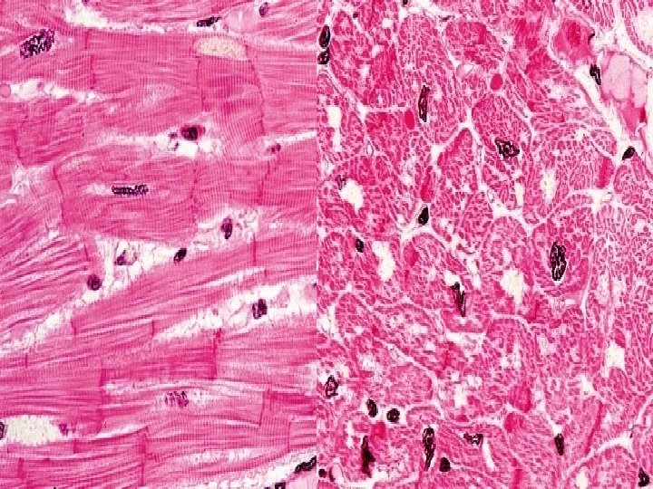 Músculo estriado cardíaco Las fibras musculares cardíacas están compuestas por células que se ramifican y forman en conjunto una red tridimensional. En los extremos estas células se unen mediante discos intercalares y el núcleo tiene localización central. Los núcleos son grandes, ovales o rectangulares (pare- cen ladrillos), de cromatina laxa y siempre centrales. Las cisternas terminales del REL interaccionan con los túbulos T para formar una díada.