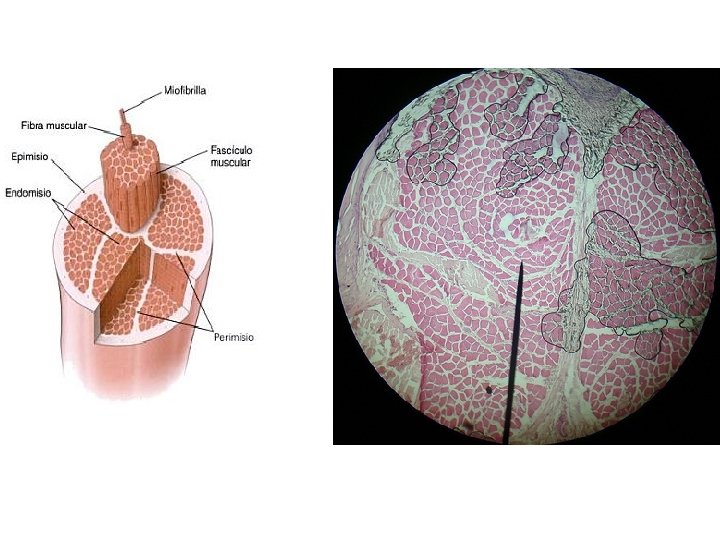 1 -Músculo Esquelético • Esta formado por fibras musculares, que son mantenidas juntas por el tejido conjuntivo • Estas fibras se forman por la fusión de los mioblastos. • El tejido conjuntivo del musculo se designa según su relación con las fibras musculares