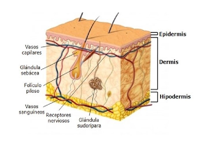 • Piel está cubierta por la epidermis por el epitelio pluriestratificado. Contienen melanocitos que le da el color a la piel , células nerviosas células de Langerhans con función defensiva.
