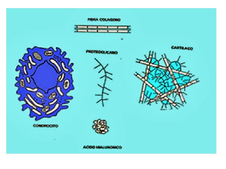 Tejidos conectivos • En ellos predomina un material producido por las células y que constituye una matriz extracelular. • Es abundante en huesos, tendones y cartílagos. • Esta matriz está compuesta por proteínas fibrosas(colágeno y elastina) y un gel de polisacáridos.