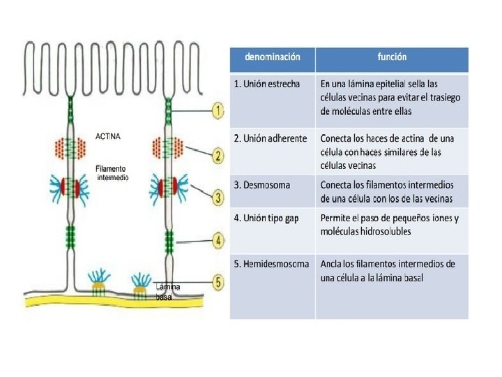 3. - Uniones comunicantes o gap juntions. • Proteínas tubulares que atraviesan el espacio desde una célula hasta su vecina. • Función : Paso de iones inorgánicos y moléculas pequeñas -Presentes en músculo liso y cardíaco -Sinapsis eléctrica de peces e insectos