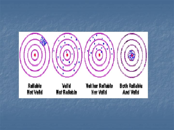 n n Ketiga, menunjukkan tembakan yang menyebar dan secara konsisten menyimpang dari sasaran tidak reliable dan tidak valid Terakhir, menunjukkan menembak sasaran secara konsisten reliable dan valid.