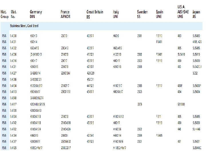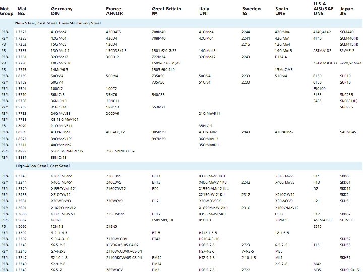 KODIFIKASI BAJA DIN Standard 3. Baja paduan rendah, angka sebelum huruf menunjukkan kadar karbon, huruf menunjukan unsur paduan diikuti beberapa angka yang menunjukkan: § Jumlah per empat persen untuk Cr, Co, Mn, Ni, Si, W. Contoh DIN 15 Cr 3 = Baja dengan 0, 15 % C dan 3/4 % Cr. § Jumlah per sepuluh persen untuk Al, Be, Pb, Cu, Mo, Nb, Ta, Ti, V dan Zr. Contoh DIN 13 Cr. Mo 44 = Baja dengan 0, 13% C, 4/4 % Cr dan 4/10 % Mo 4. Baja paduan tinggi, sebelum angka pertama diberi huruf X. angka sesudahnya menunjukkan kadar karbon dan angka dibelakang nama unsur paduan langsung menunjukan persentasenya. Contoh DIN X 45 Cr. Si 9 = Baja dg 0, 45 % C , 9 % Cr dan sedikit Si.
