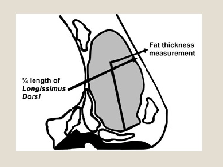 CARA PENGUKURAN • Mengalikan panjang X lebar irisan melintang daging mata rusuk. • Plastic Grid buat kotak-kotak 1 X 1 cm Bila ada 80 titik 80 cm 2 = 8, 0 inci 2